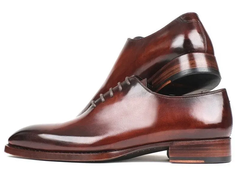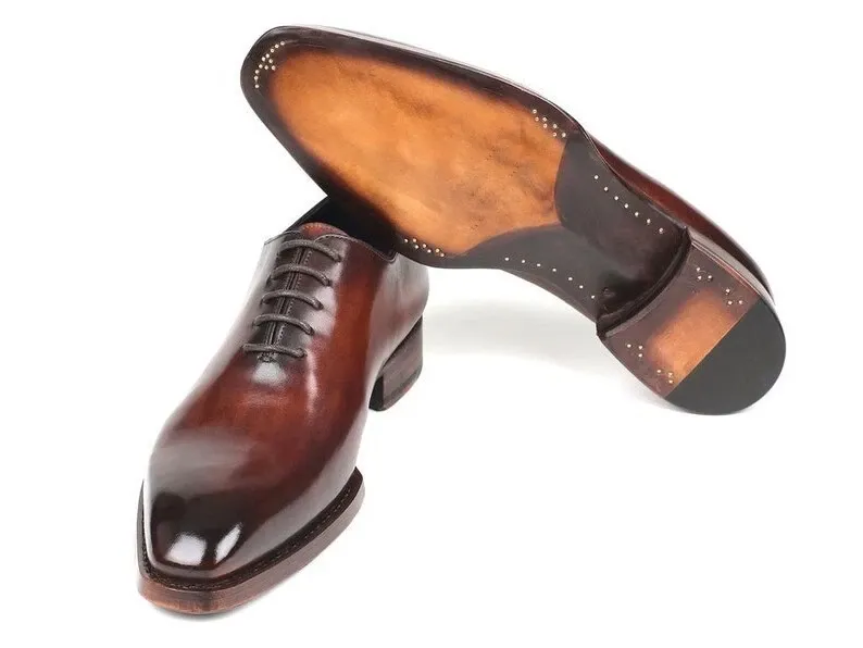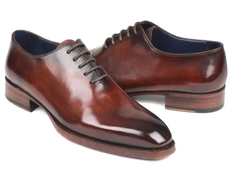 Handmade Brown Leather Oxfords Hand Painted Lace Up Dress Shoes For Men