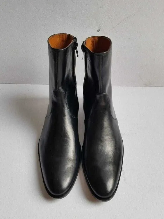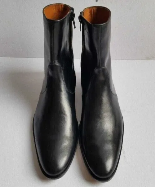 Step up your style with our handmade shoes for Men’s Black Calf Zipper Boots, designed for the modern man who values elegance and comfort. These ankle-high boots are crafted from premium calf leather, offering a smooth, polished finish that adds sophistication to any formal or semi-formal outfit.