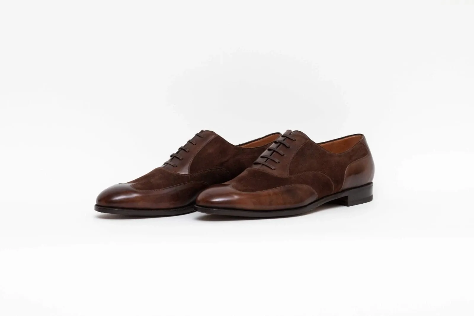 Men’s Handmade Brown Leather & Suede Round Toe Wing Tip Lace Up Oxford Shoes