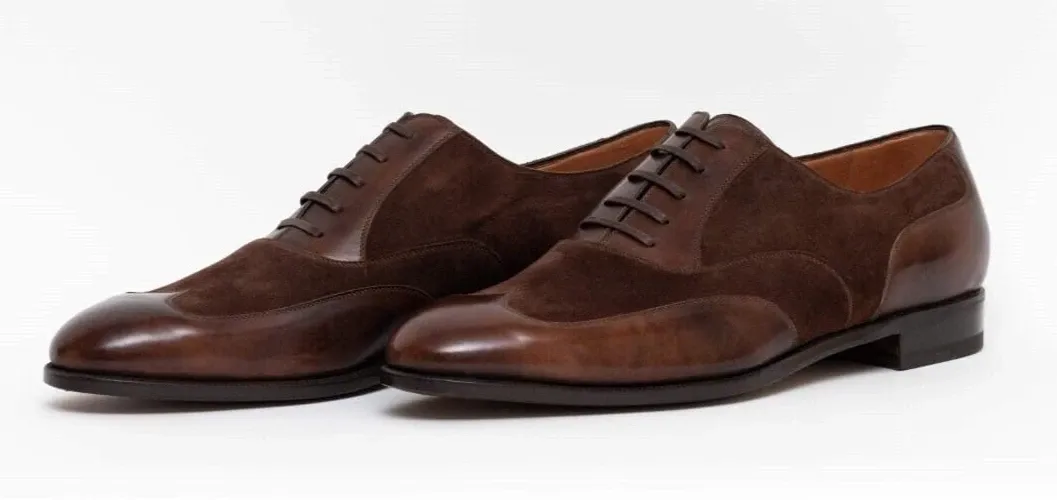 These shoes are handmade from real leather and soft suede, making each pair one-of-a-kind. The round toe and lace-up design keep your feet comfortable all day, while the wingtip style gives a smart, classy look. Strong and durable, these shoes are perfect for work, parties, or special days.